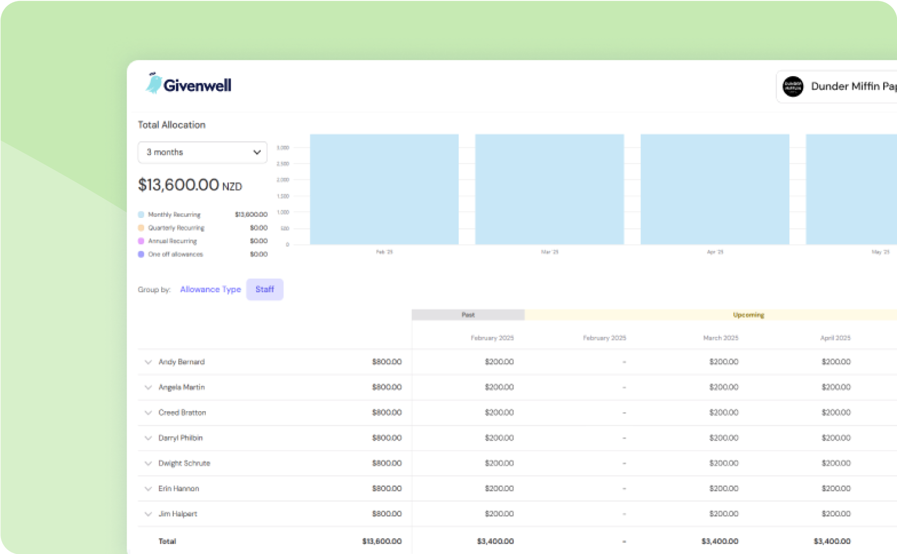 We designed Givenwell to be simple to set up and manage. Import staff lists via CSV, set bulk allowances, and let the platform do the rest.