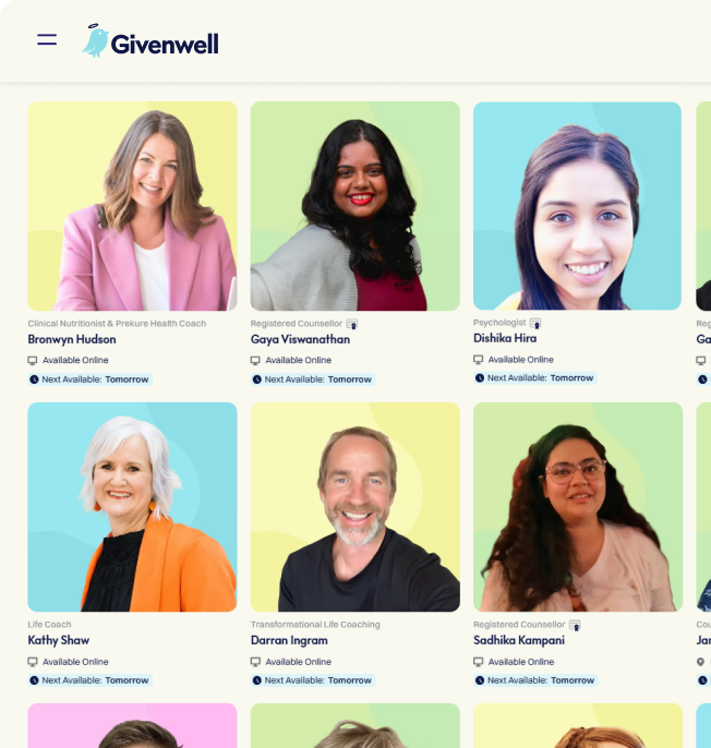 This optional feature is a replacement for traditional EAP that allows your team to access fully funded therapy and coaching sessions from inside Givenwell.
