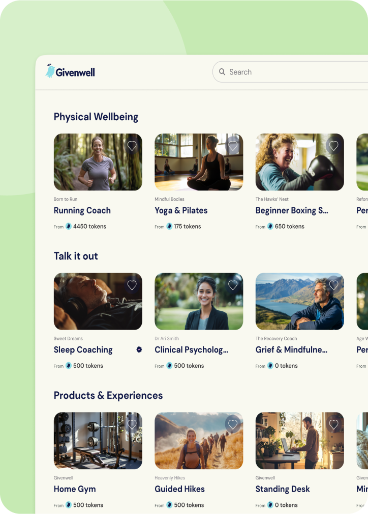 Staff can redeem their Givenwell on hundreds of carefully curated wellbeing offerings in our marketplace.