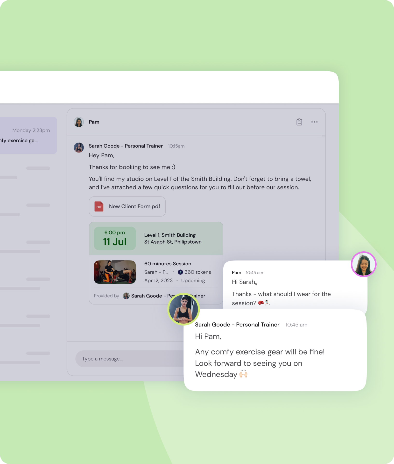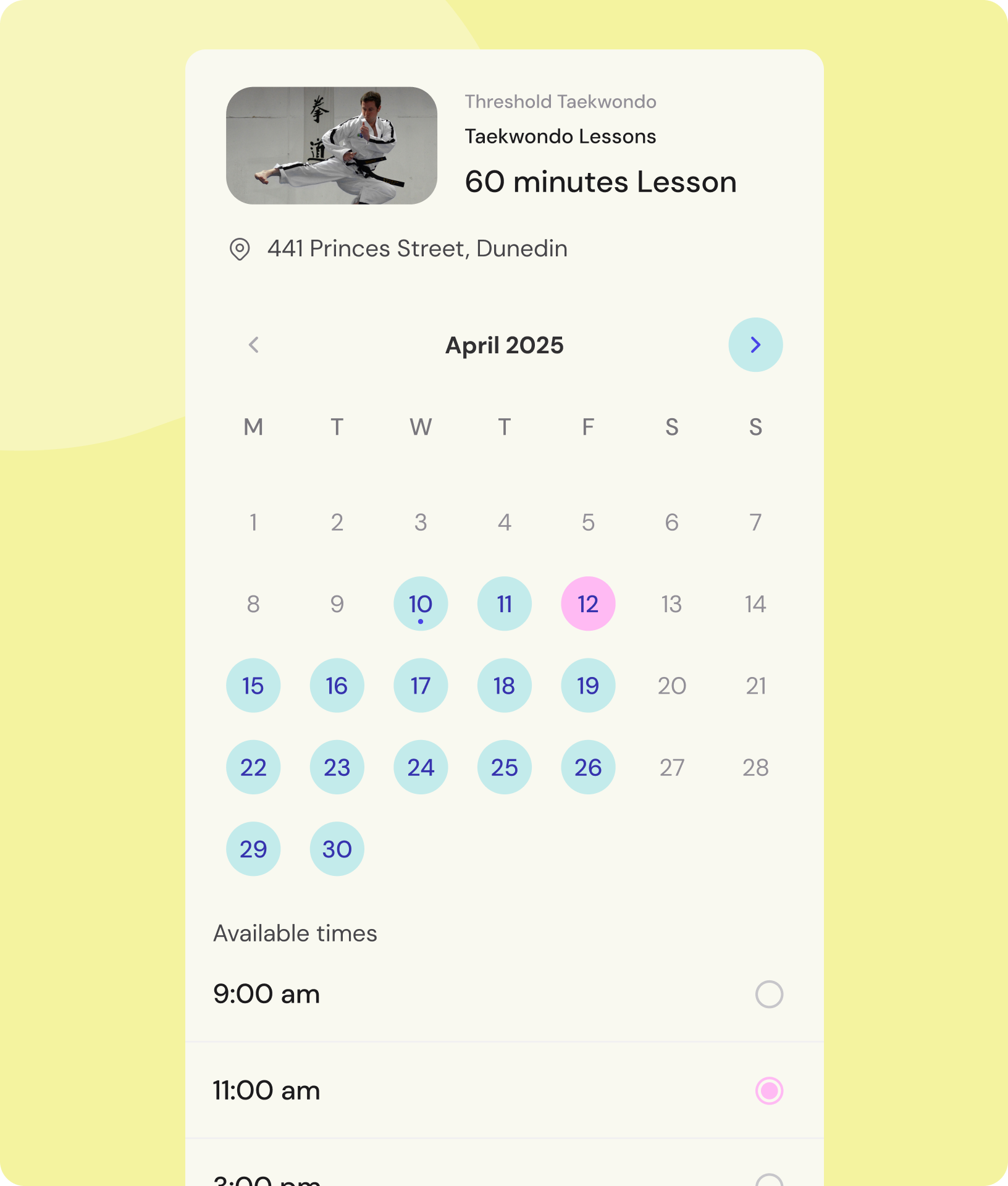 Offer times for members to book with you or link your calendar for automated bookings based on your availability.