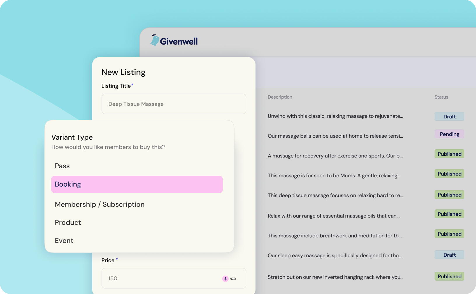Members can message you in Givenwell with any questions. Set automated post purchase messages with instructional material or forms they need to complete.